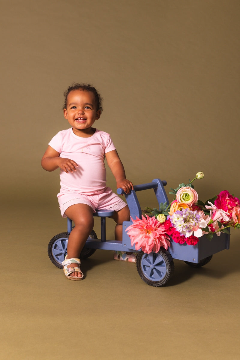 Een leuke zomerse korte broek in een licht roze kleur.