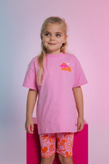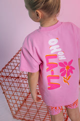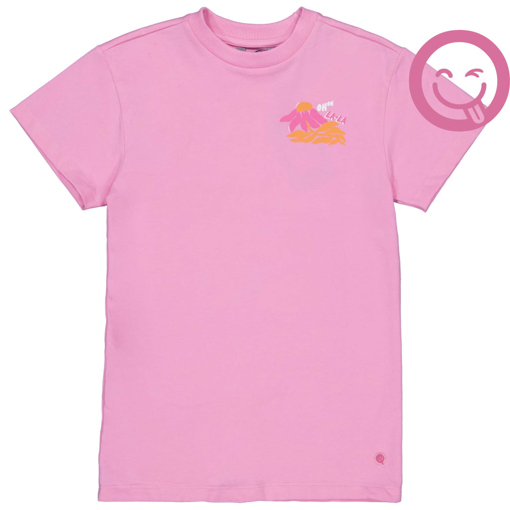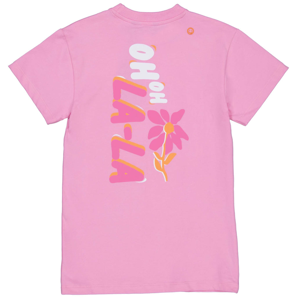 Een leuk roze shirt met een vrolijke print op de achterkant.